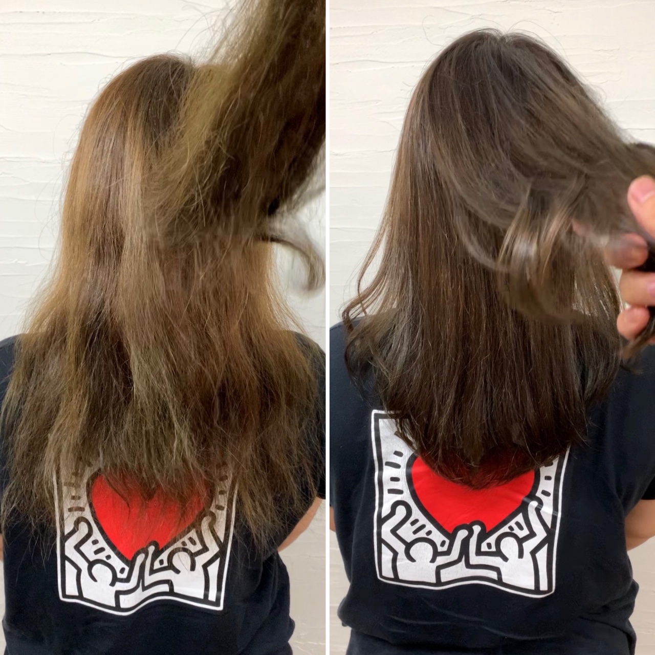 この方法を使うと、確かに仕上がった瞬間はサラサラになって、補修成分も髪の内部にしっかり留まって、一旦は綺麗になります。
