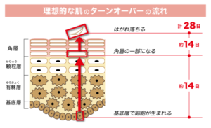 復習になりますが、ターンオーバーは28日周期で行われるのが理想的ですが、それは20歳までです。